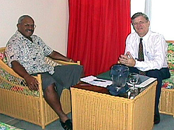 At the invitation of PBEC Fiji Member Committee Chairman Gerald Barrack and Secretary General Ken Roberts, Lees met with the Fiji Employers Federation board, as well as Noel Levi, Secretary General of the South Pacific Forum. Lees then met with Prime Minister Sitiveni Rabuka and his Chief Economic Analyst Sakiusa Tuisolia to discuss economic development and regional economic issues. Lees was also interviewed by the Fiji Times. |