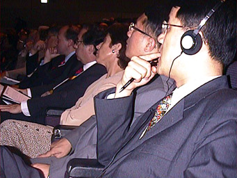 Delegates listen as Professor Bhagwati addresses "Emerging Markets in the Global Economy," the theme of the plenary session. |