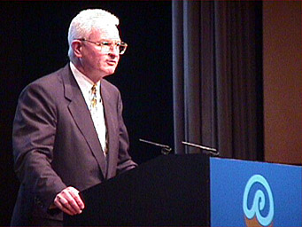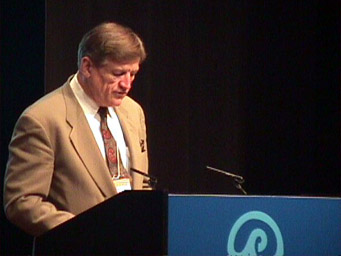 Robert G. Lees, Secretary General, delivers the conference statement, summarizing the accomplishments and highlights of the 32nd International General Meeting. |