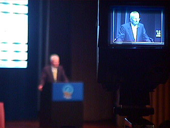 The closing session, like all key proceedings, was broadcast throughout the convention center via closed-circuit television. |