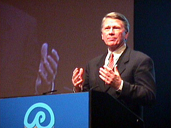 Lawrence Johnson, chair of the steering committee for the 2000 IGM, invites attendees to Honolulu. |