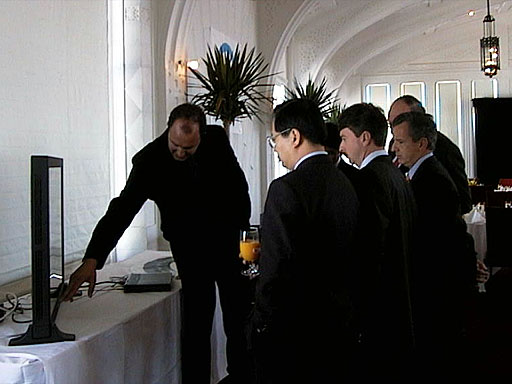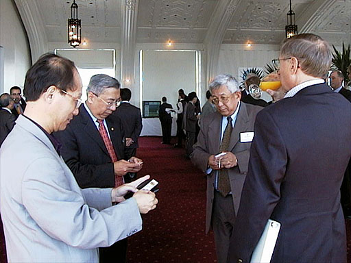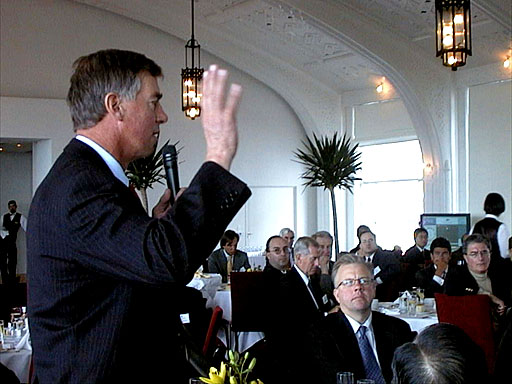 A representative from luncheon sponsor Ericsson Communications, Ltd., introduces delegates to some of the technology the company is providing for the upcoming America's Cup. |
