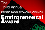 Thank you for your interest in the PBEC Environmental Award. The Environmental Award reflects PBEC's commitment to promoting environmentally responsible business practices, and was established to recognize PBEC companies that have made particularly outstanding contributions to environmental protection. All nominations are evaluated by a panel of internationally recognized judges. The first PBEC Environmental Award went to Green Island Cement (Holdings) Ltd. of Hong Kong in 1999 and the second PBEC Environmental Award was presented to Sony Magnetic Products (Thailand) in March of 2000. This web site contains background information, profile of the PBEC Environmental Award, profile of PBEC Environmental Working Committee, last year's recipients and finalists and last year's judges. The 3rd PBEC Environmental Award nomination process opened on August 25, 2000 and nominations were due on November 3, 2000. Please note that all nominations were due to the International Secretariat electronically or in hard copy by 5 p.m., Hawaii Standard Time. Please select one of the links at right for more information or to download forms and supplementary materials. For more information, please contact: Bernice Bowers |