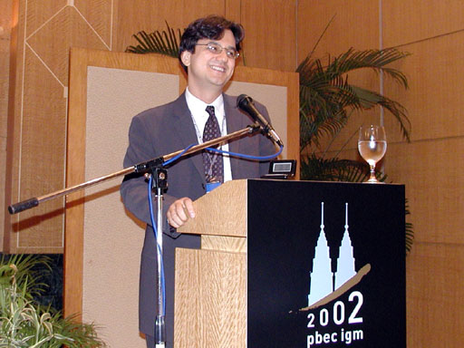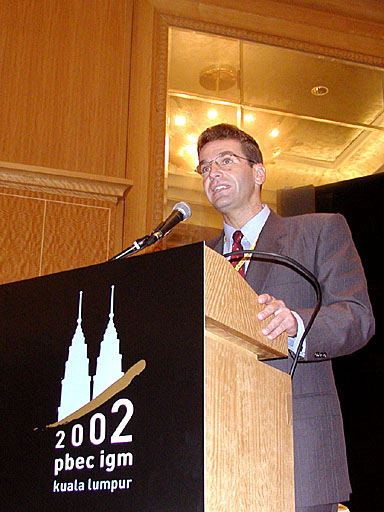 ![[ May 7 ]](07closing4-sm.jpg) | | Incoming PBEC Chairman S.R. Cho delivers his introductory remarks. |