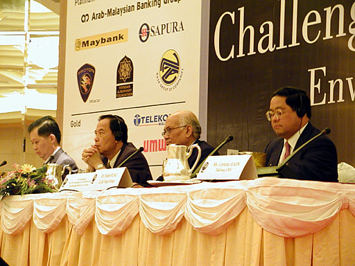 ![[ May 7 ]](07closing7-sm.jpg) | | Conference Chairman Tan Sri Azman Hashim delivers his closing remarks. |