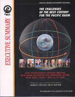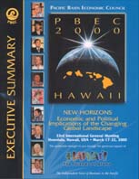 | This Executive Summary includes several speeches, transcripts of sessions and photos from the 33nd International General Meeting, held March 17-22, 2000 in Honolulu, Hawaii. Key speakers include: Steve Forbes, President & CEO, Forbes, Inc.; Charlene Barshefsky, United States Trade Representative; Han Duck-Soo, Korean Minister for Trade; Admiral Dennis Blair, Commander in Chief, U.S. Pacific Command; Yoshihide Munekuni, Chairman, Honda Motor Company; Sir Peter Blake, Head of Expeditions, The Cousteau Society; Rafael Buenaventura, Governor, Central Bank of the Philippines; Vance Coffman, Chairman, CEO & President, Lockheed Martin Corp.; Helmut Sohmen, Chairman, World-Wide Shipping Agency Ltd.; and Gullermo Fernandez DeSoto, Colombia Minister of Foreign Affairs. A full delegate list is also included. | |||